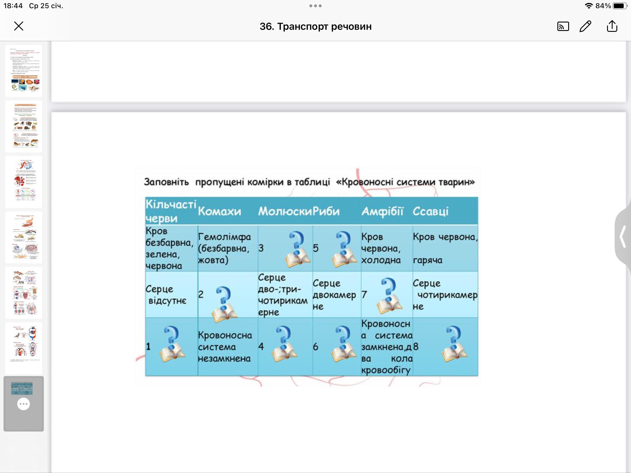 3- синьовата купрумна кров. 4- може бути замкнута або незамкнена 5- деоксигенова кров. 6- замкнена кровоносна система. 7- двокрамерне серце. 8-замкнута кровоносна система.