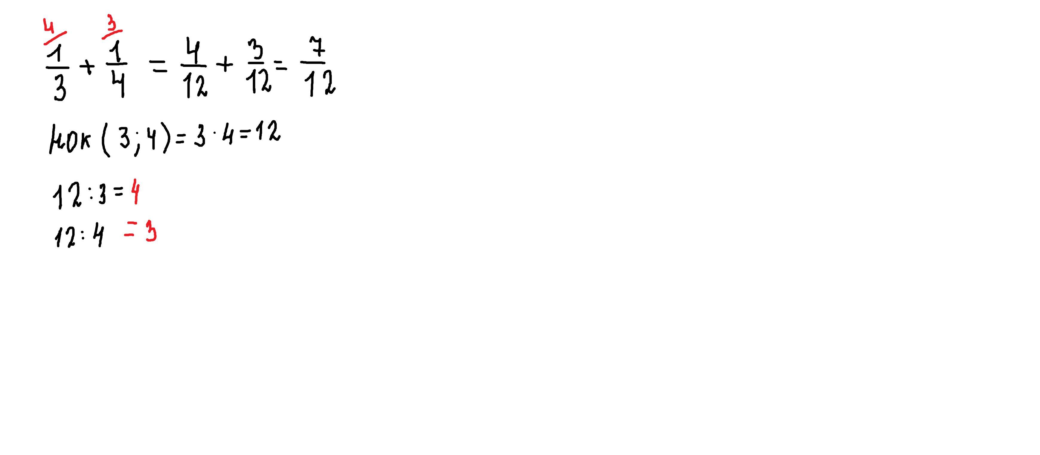 числа 3 и 4 взаимно простые,поэтому общим знаменателем будет их произведение.