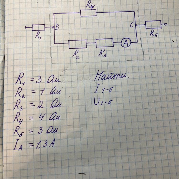 I1=I5=I2+I4=1,3+0,975=2,275А