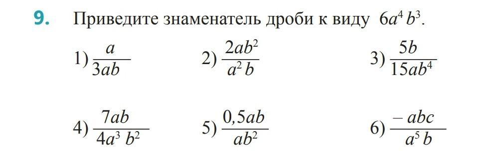 0,5ab/ab²=0,5ab•6a³b/6a⁴b³=3a⁴b²/6a⁴b³