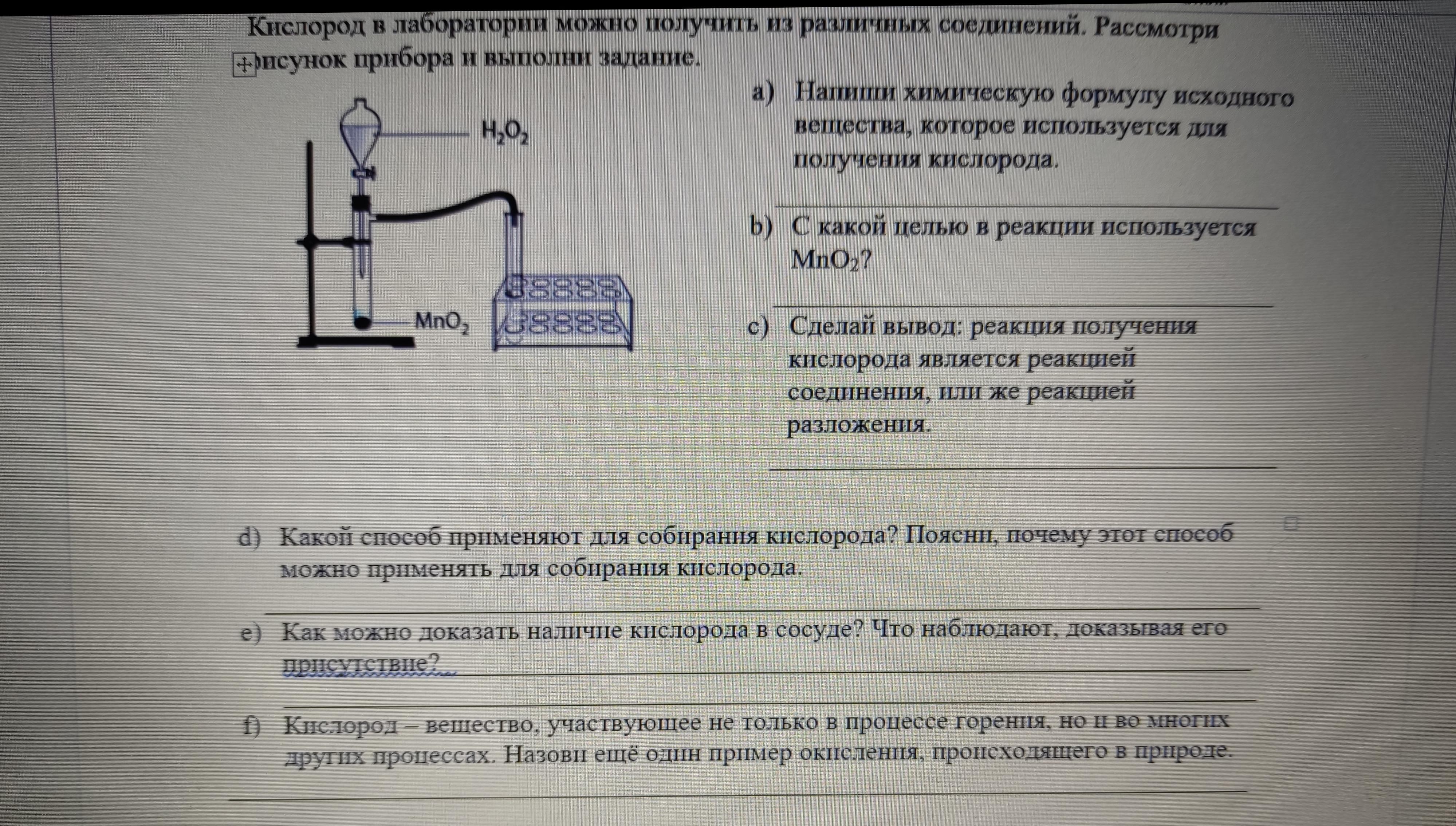 d) способ получения вытеснением воздуха. Кислород тяжелее воздуха