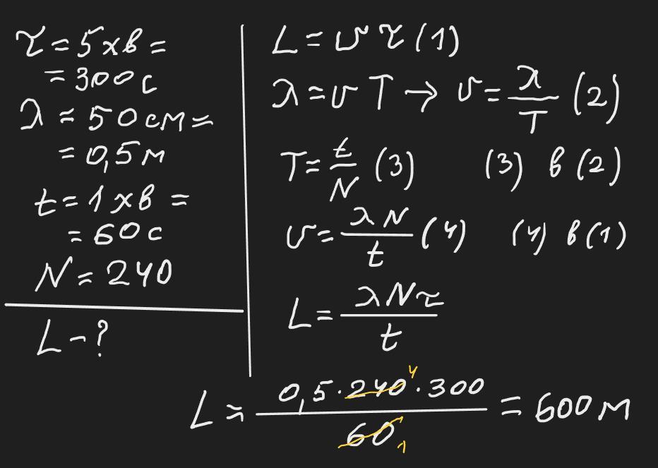 Помітили, що хвиля дійшла до берега за 5 хв. Відстань між сусідніми гребенями хвилі