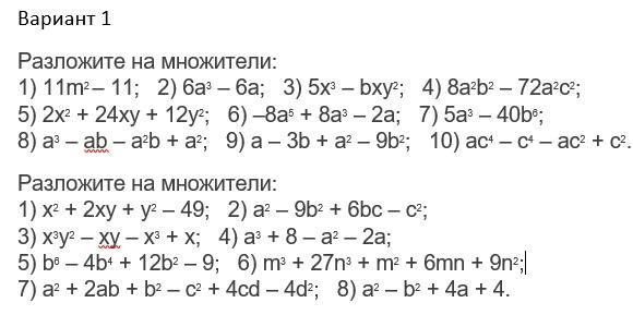 8) a3 – ab – a2b + a2; 9) а – 3b + a2 – 9b2; 10) ас4 – с4 – аc2 + c2.