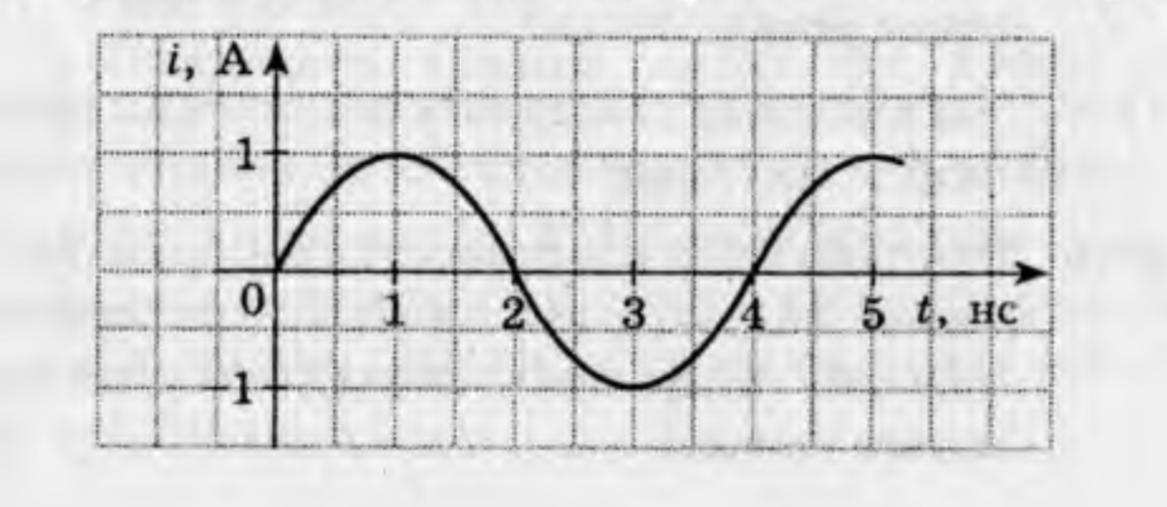 На рисунку наведений графік коливань сили струму в коливальному контурі генератора радіопередавача. На якій довжині хвилі можна приймати його передачі?