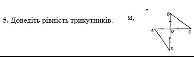 вони рівні за двома сторонами і кутом між ними (оскільки вони вертикальні кути також рівні)
