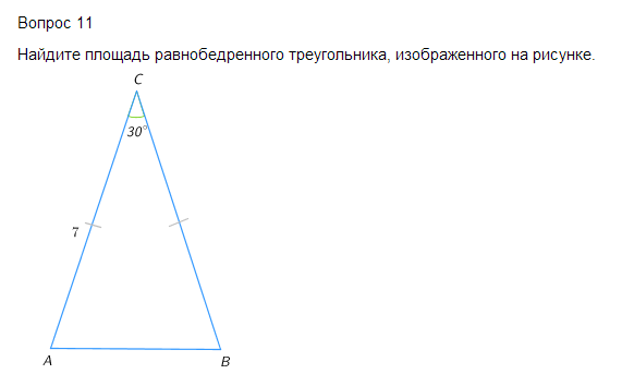 S=(1/2)*7*7*sin30=(1/2)*49*1/2=12,25 см2