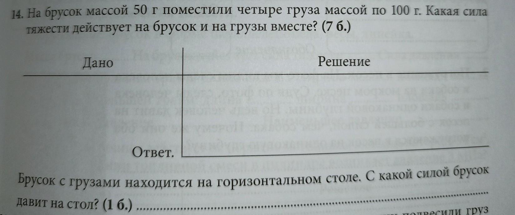 спасибо большое! а могли бы вы ответить на вопрос с какой силой брусок давит на стол??