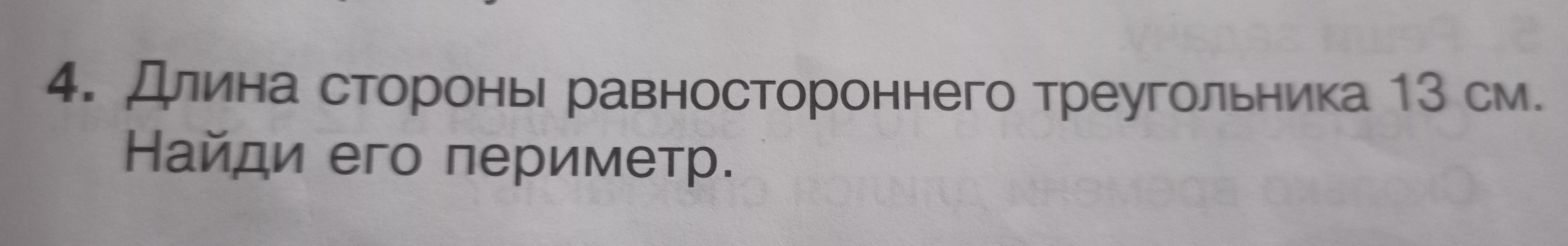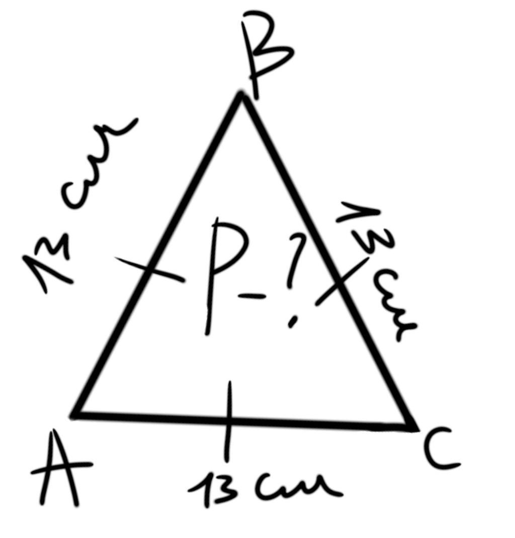 У равностороннего треугольника все стороны равны. Значит все стороны треугольника равны 13 см. Периметр это сума длин всех сторон треугольника. У треугольника три стороны.