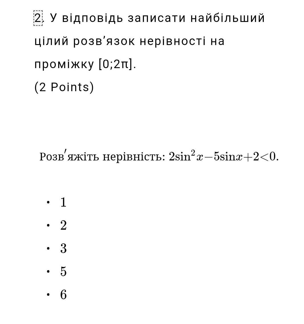 В ответ надо выбрать наибольшее целое решение в радианах на промежутке .