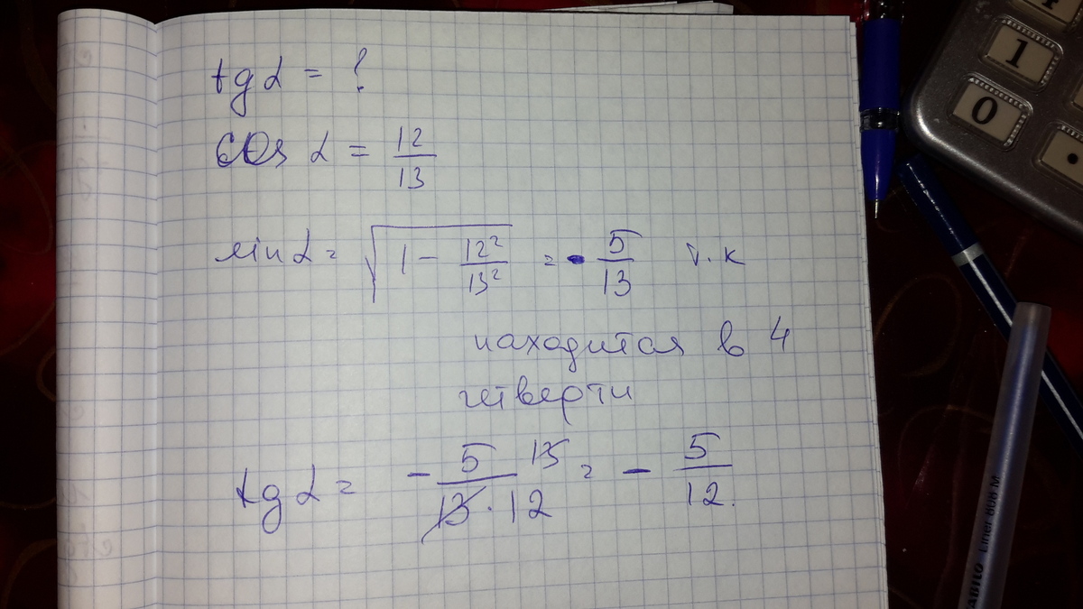 tga, если cosa= 12/13. Если а находиться в 4той четверти.