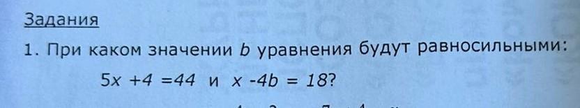 1. При каком значении ь уравнения будут равносильнь 5x +4 =44 и х-4b = 18?