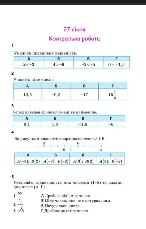 1.Б 2.В 3.Г 4.А 5 1-г 2-а 3-Б