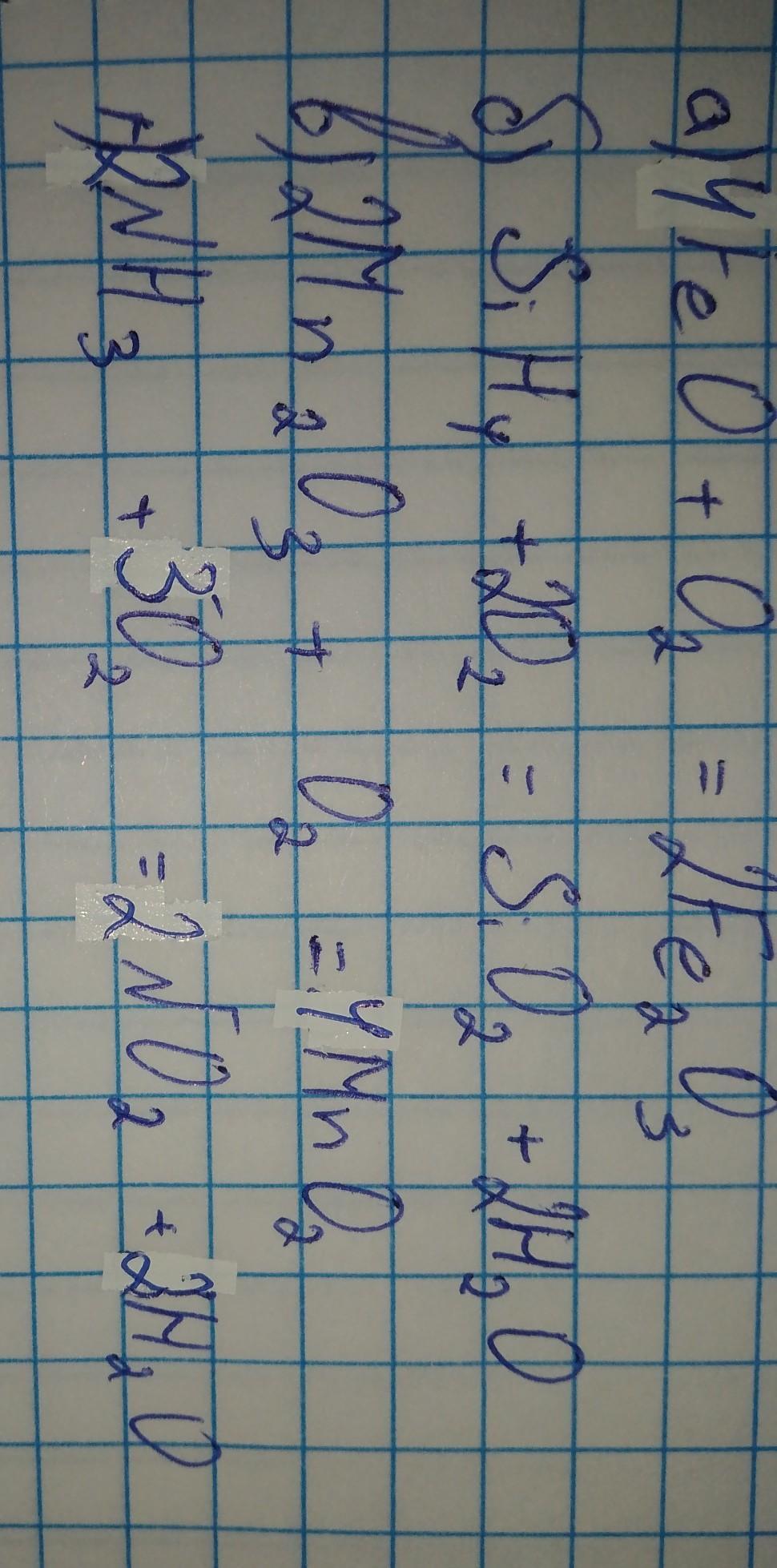 г) NH3 + O2 → NO2 + H2O. Назвіть продукти, порахуйте суму коефіцієнтів