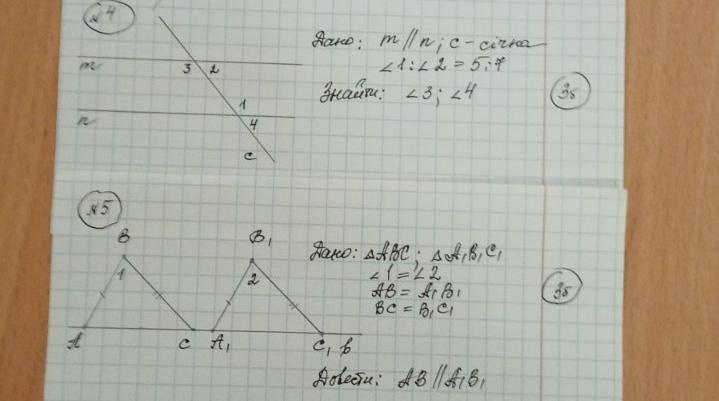 Ответ:1. 4x+5x=180°x=80угол1=угол3=100° потому что они накрест лежащие углы.угол 4 = 80° потому что они соответствующие углы.