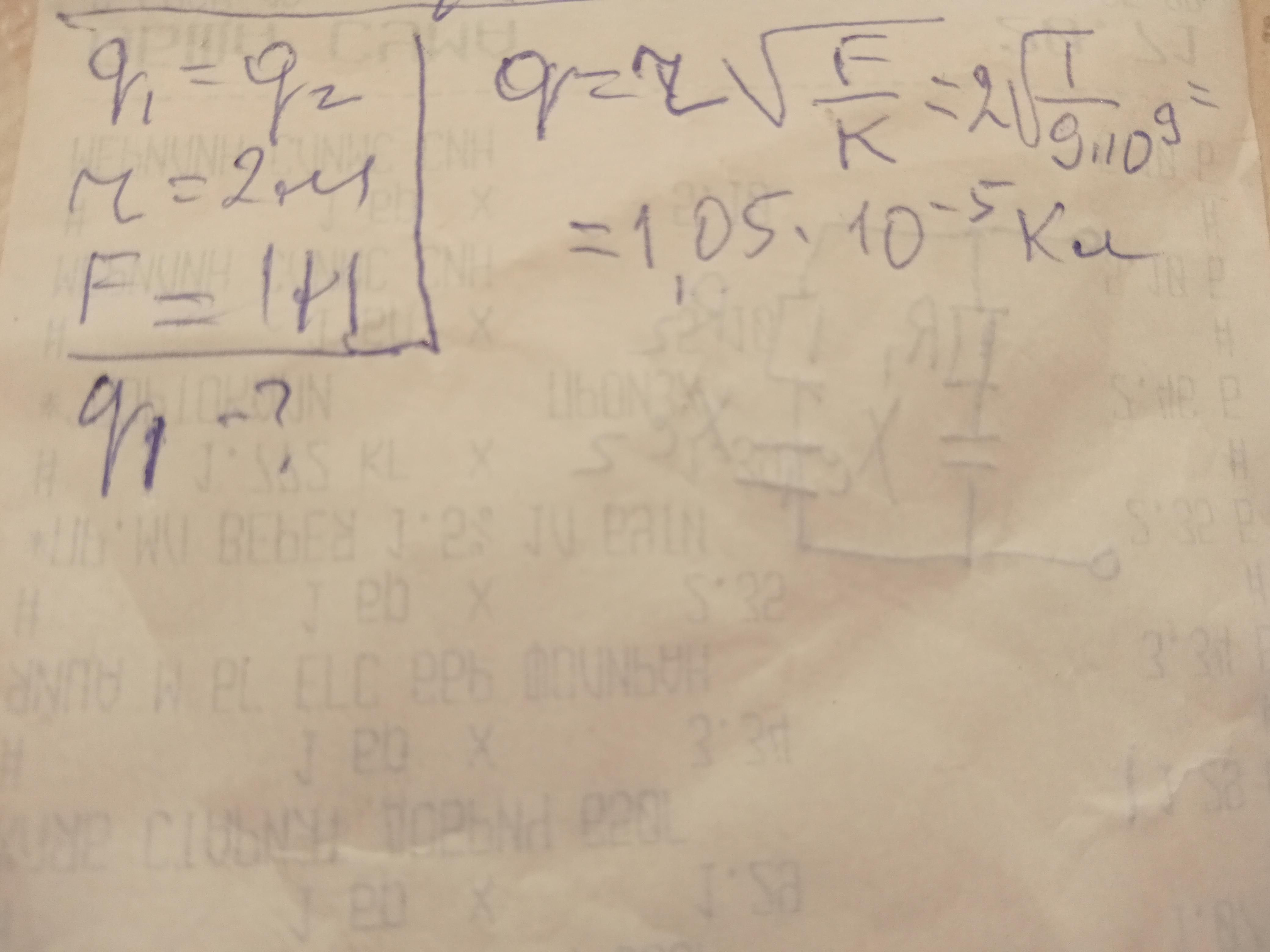 Дві однаково заряджені кульки перебувають на відстані 2м одна від одної і відштовхуються з силою 1 Н. Який заряд цих кульок?
