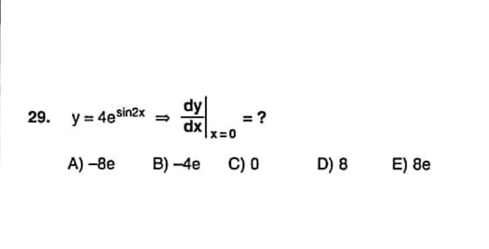 29 . y = 4e^( sin2x ) ; dy/dx│x=0 - ?