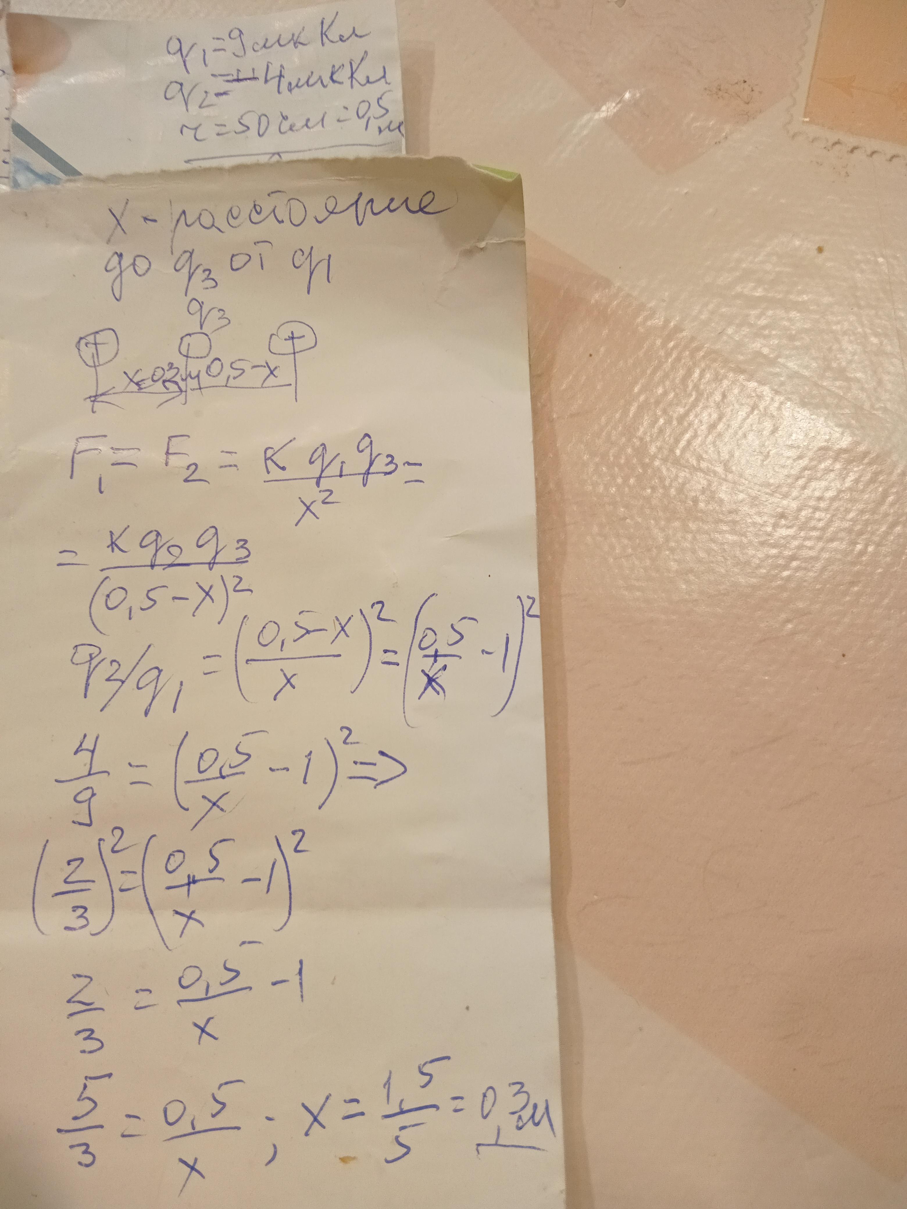 9. Два заряди +9 та -4 мкКл містяться на відстані 50 см один від одного. На якій відстані від позитивного заряду потрібно розташувати ще один позитивний заряд, щоб він перебував у рівновазі? Зроби пояснювальний малюнок.