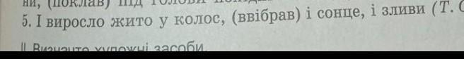 2. Граматична категорія: дієслово - виросло, ввібрав; іменник - жито, колос, сонце, зливи; прийменник - у; сполучник - і.