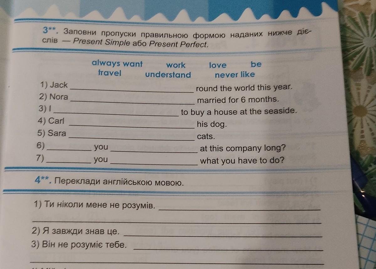 3. Заповни пропуски правильною формою наданих нижче діє- слів - Present Simple aбo Present Perfect.