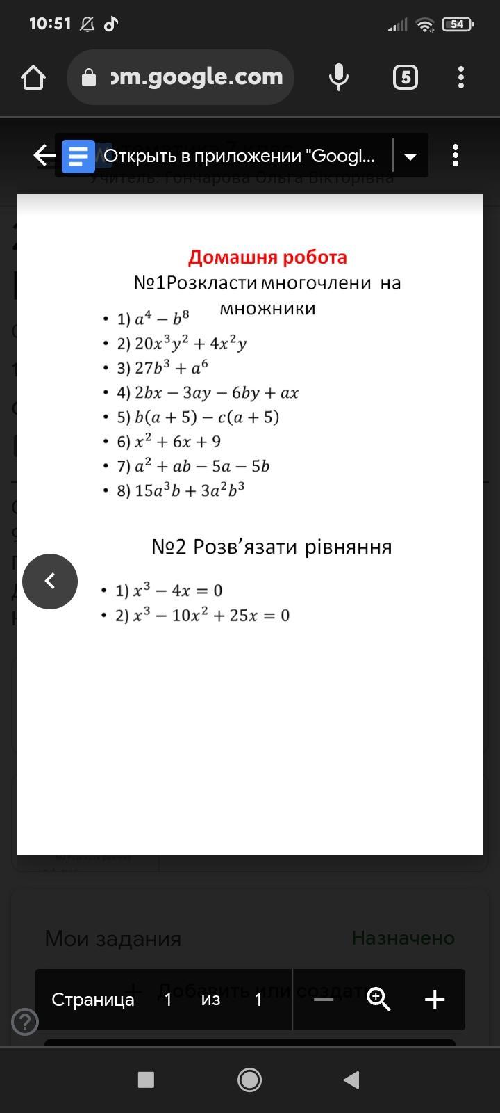 1) a^4 - b^8 = (a^2 + b^4)(a^2 - b^4) =