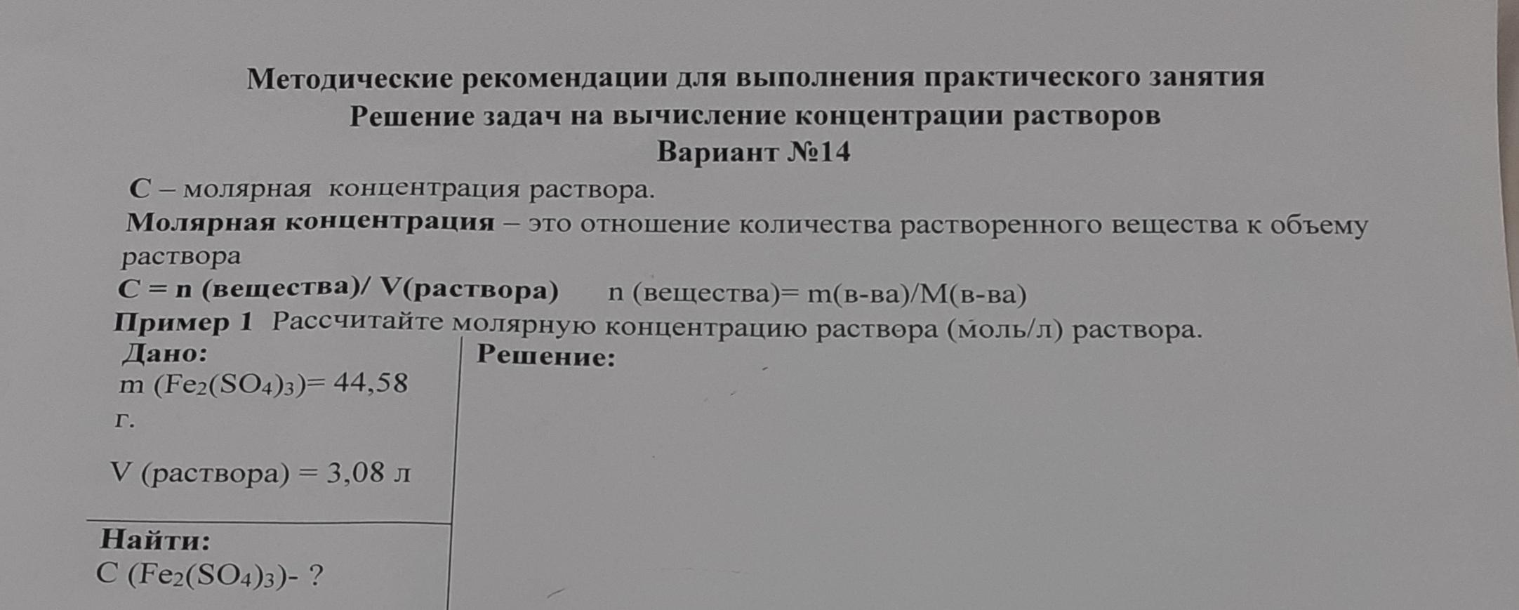 Дальше так как обьём у нас уже есть находим концентрацию.