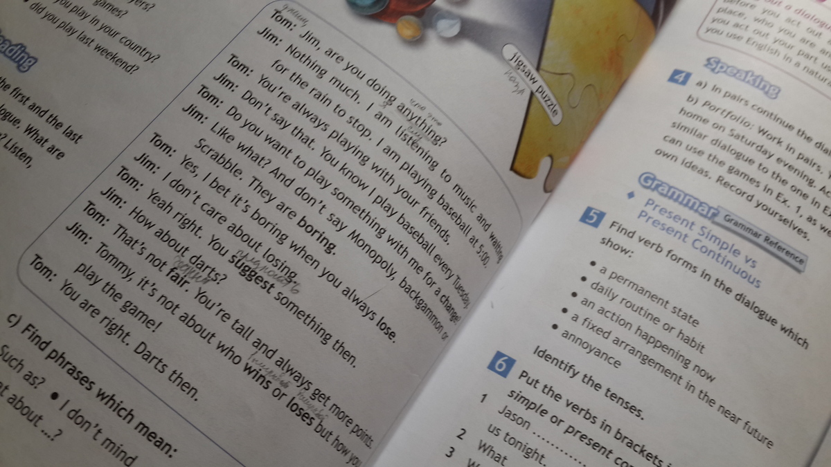 Джим: Ничего особенного. Я слушая музыку и жду, пока закончится дождь. Я играю в бейсбол в пять часов.