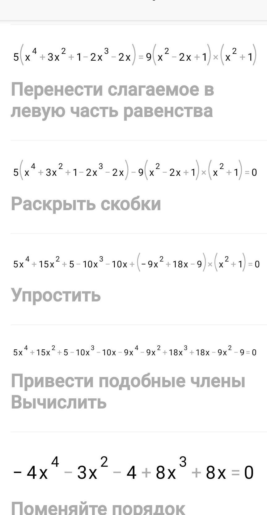 5(x⁴+3x²+1-2x³-2x)=9(x²-2x+1)*(x²+1)