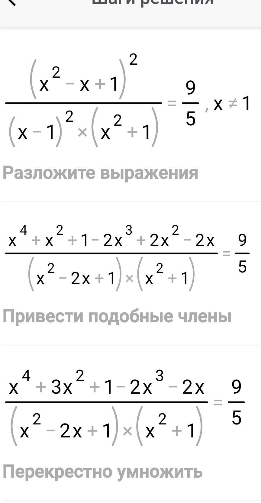 (x⁴+x²+1-2x³+2x²-2x)/(x²-2x+1)*(x²+1)=9/5