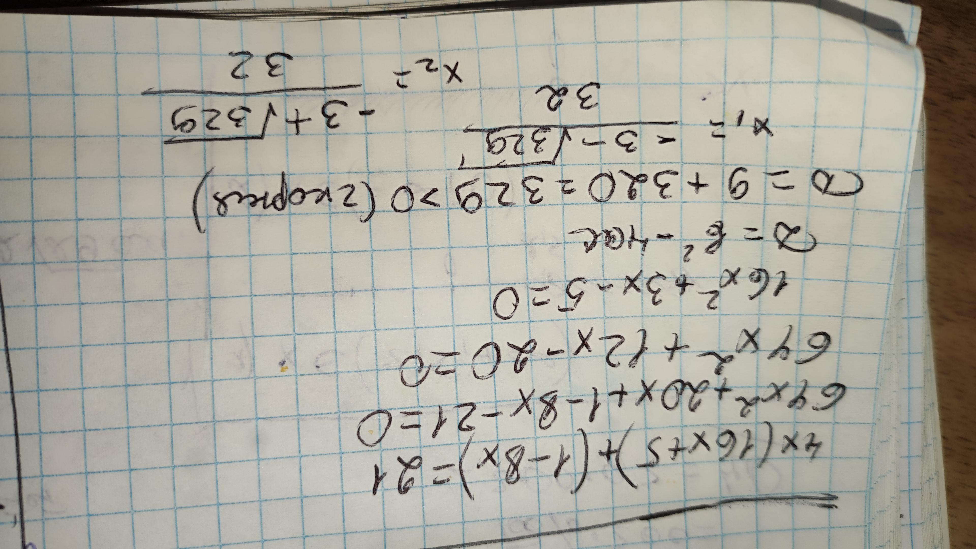 розв'яжіть рівняння 4х(16х+5)+(1-8х)=21