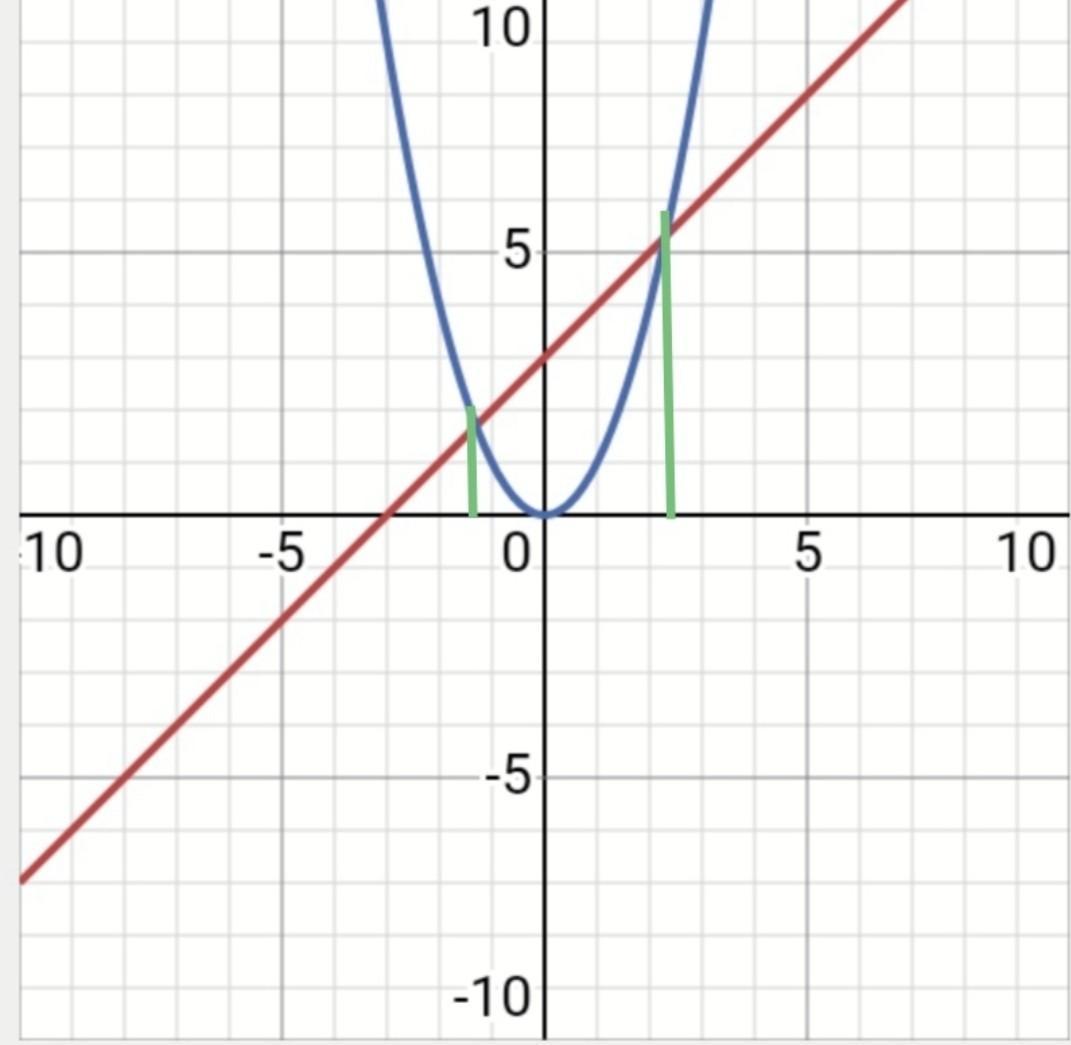 решение: х= -1,3 ; х=2,3 (зелным цветом)