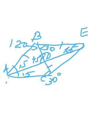 в треугольнике АДС УГОЛ А=15°, ТАК КАК В ТРЕУГОЛЬНИКЕ АДВ УГОЛ Д=45, А УГОЛ АДС ЕМУ СМЕЖНЫЙ,СЛЕДОВАТЕЛЬНО 180-45=135,А УГОЛ А=180-(135+30)=15°. ДОПОЛНИМ ТРЕУГОЛЬНИК АВС ДО ПАРАЛЛЕЛОГРАММА И РАССМОТРИТЕ углы при параллельных ВЕ И АС И СЕКУЩЕЙ АЕ,УГОЛ ВЕА=15, А ТАК КАК ТРЕУГОЛЬНИК АВЕ РАВНОБЕДРЕННЫЙ, ТО УГОЛ ВАЕ ТОЖЕ 15 ,УГОЛ АВС=180-(15+45)=120°