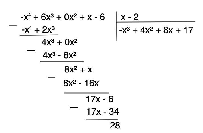 Теперь найдем остаток при делении данного многочлена на двучлен x-2.