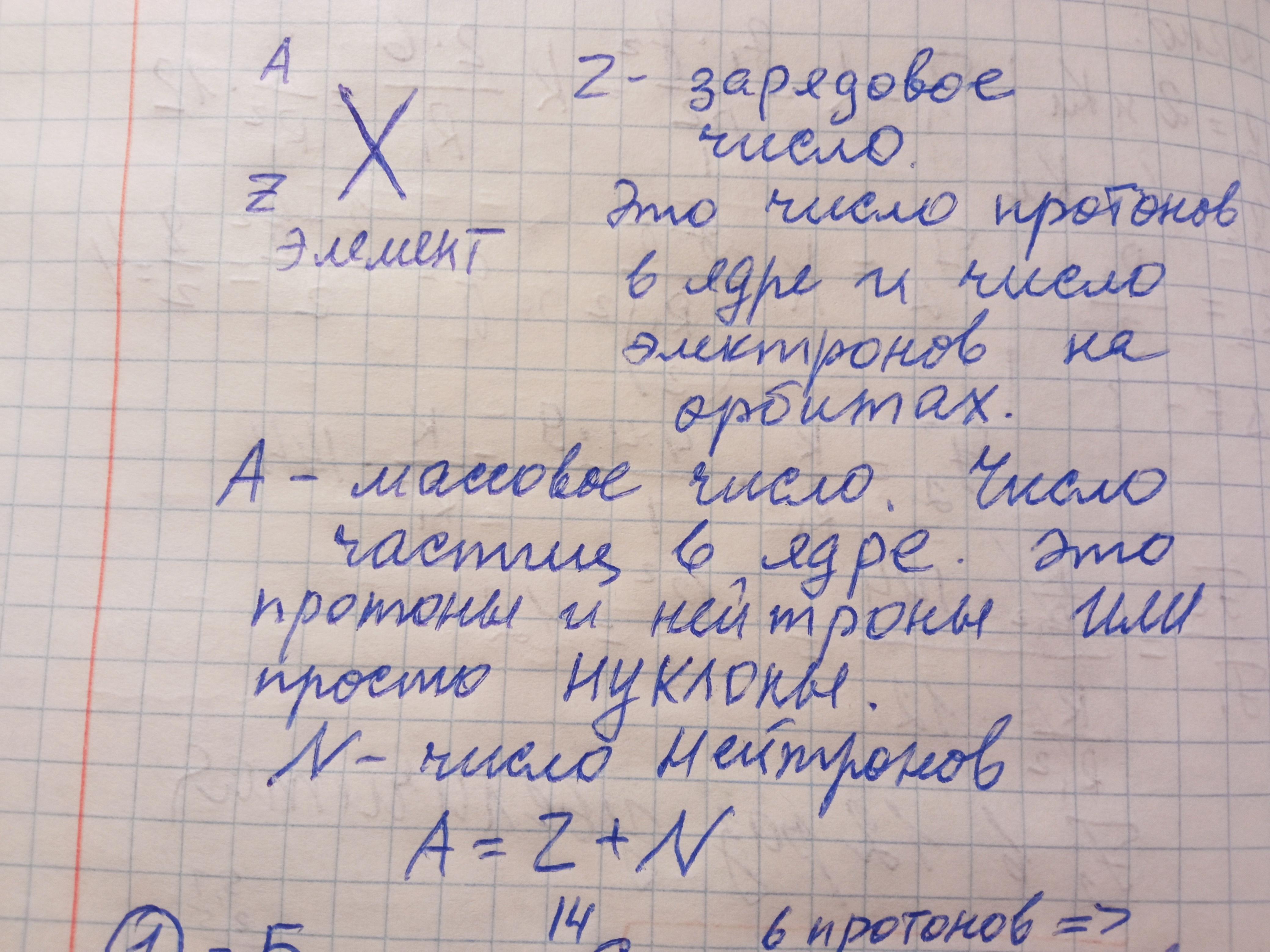 Ядро состоит из НУКЛОНОВ. Это протоны Z + нейтроны N. Они составляют массу атома А. Протоны имеют заряд и массу. Нейтроны только массу. Число электронов равно числу протонов в нейтральном, незаряженным атоме. Масса электронов очень мала по сравнению с протонами и нейтронами. Пока не учитываем.