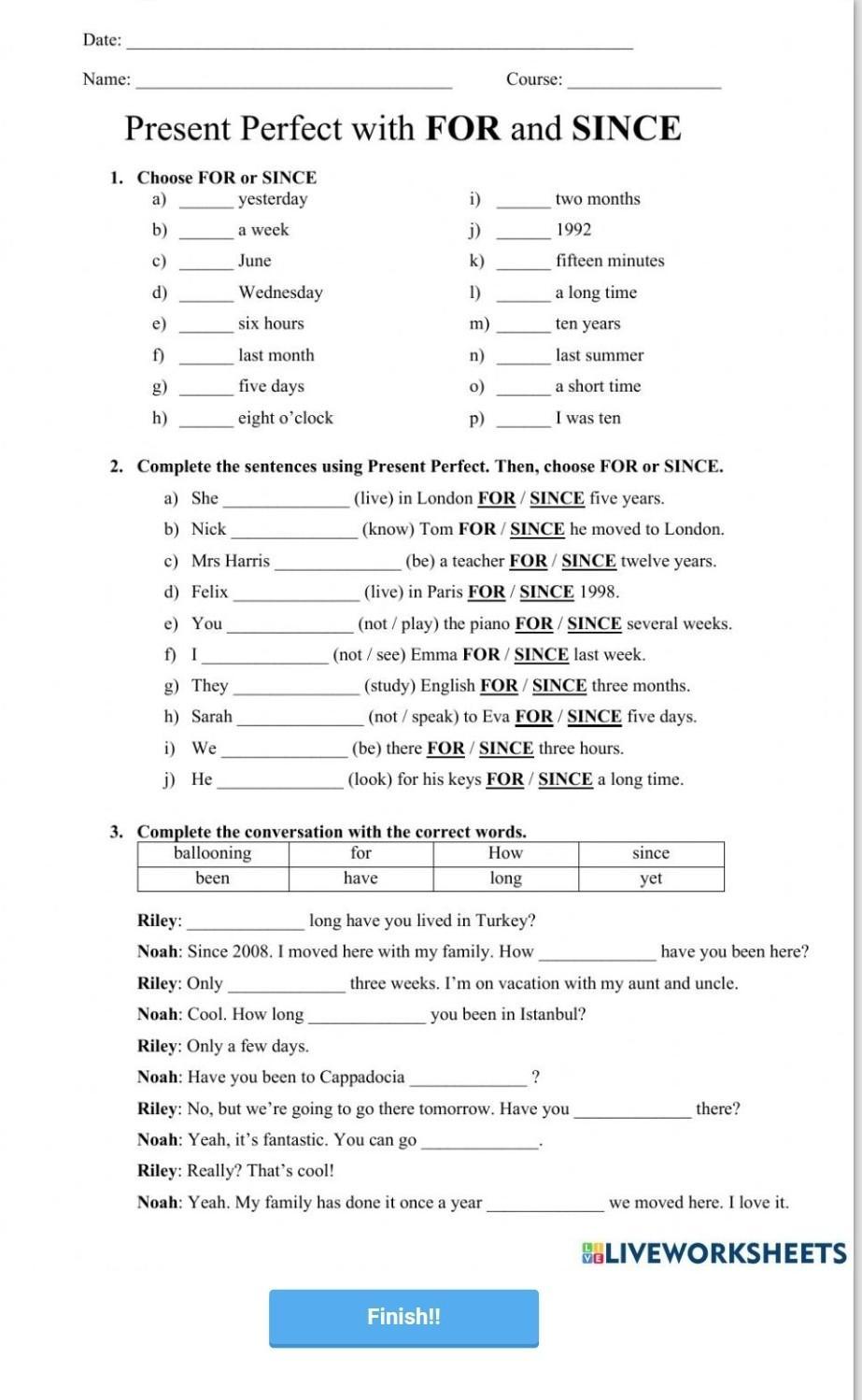 1since. 2for. 3since. 4since. 5for 6since. 7for. 8since. 9for. 10since. 11for. 12for