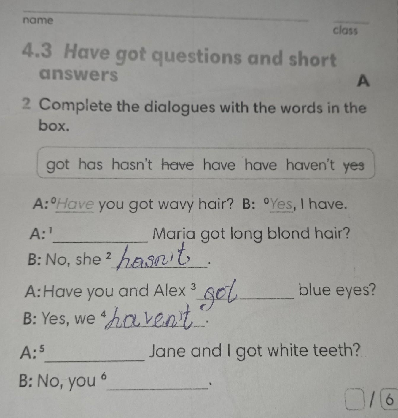 A: Have you got wavy hair? B: Yes, I have
