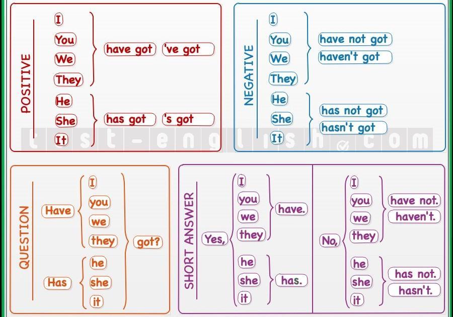 (на фотографии правило употребления "have" и "has")