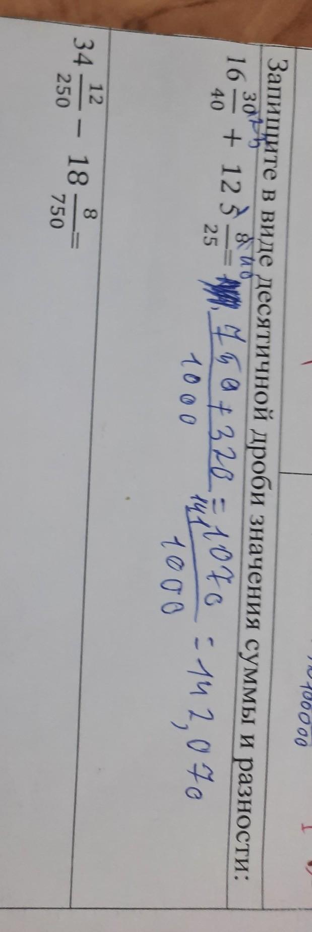 100000 f Запищите в виде десятичной дроби значения суммы и разности: я по 30 160 + 125 40 34 12 250 - 18 1 25 8 750 А 790+320 лохо - 14 2,070 1000 141 1000 плиззззз только втоторое можете решить СРОЧНО