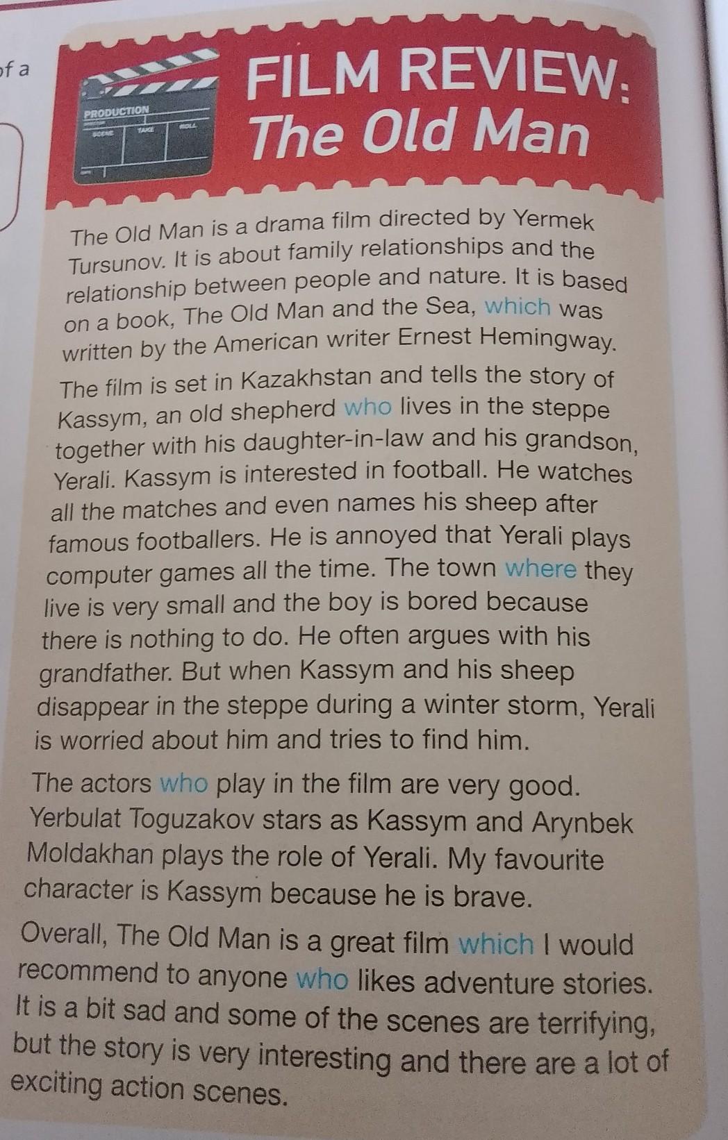 7 Write a review of a Kazakh film. Use the questions in exercise 2 to help you.