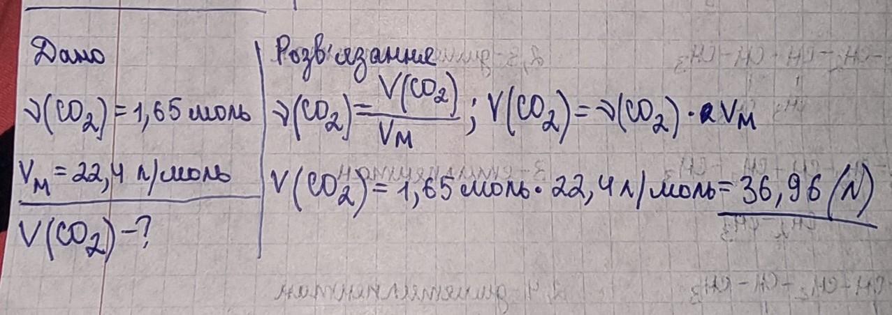 V(CO2)=1.65моль*22.4л/моль=36.96л