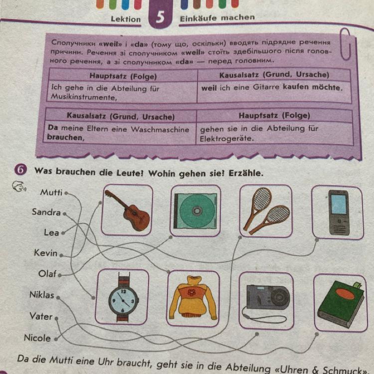 8. Da Nikole ein Buch braucht, geht er in die Abteilung "Bücherei" oder "Büchergeschäft".