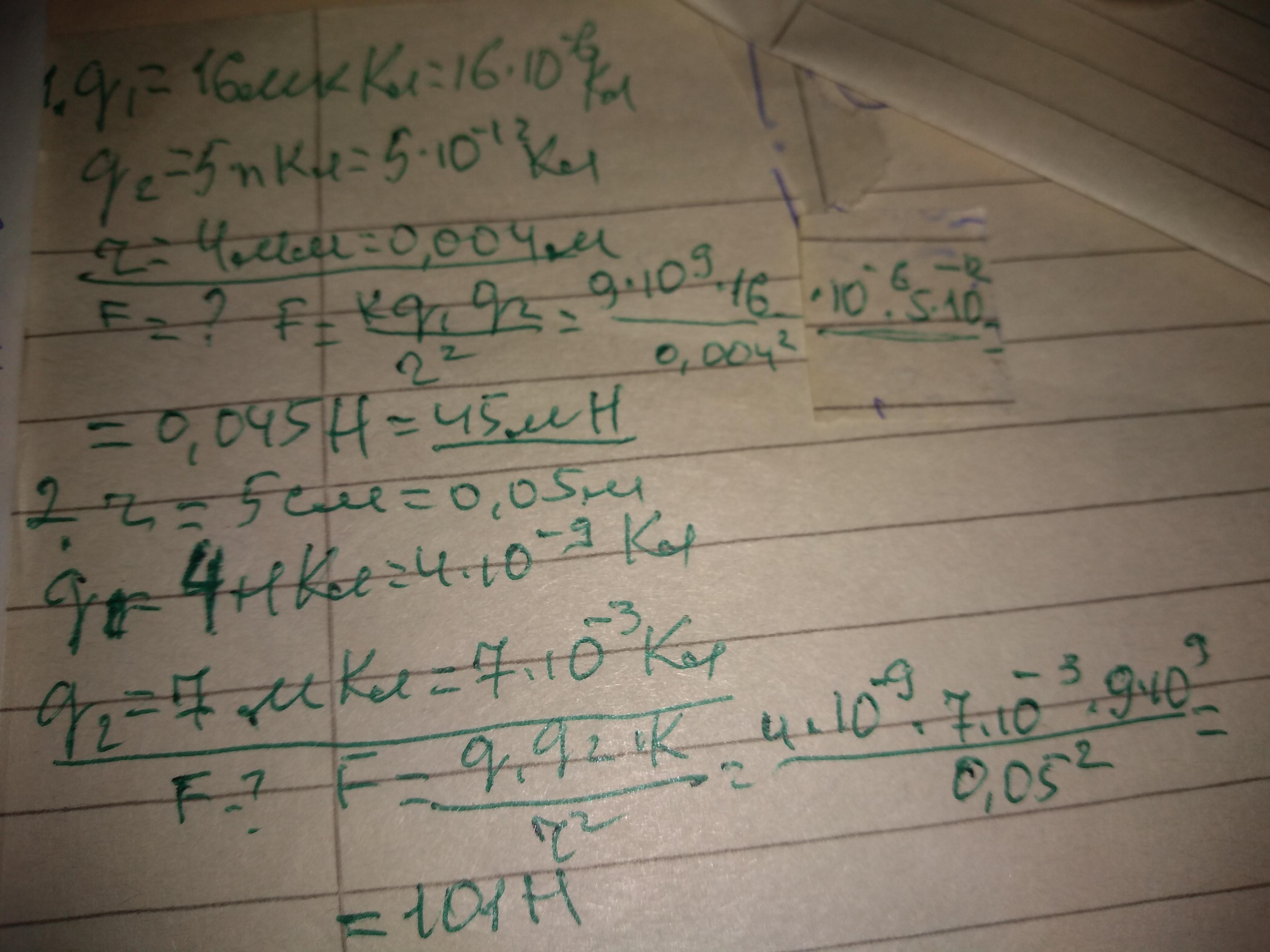 1 Два заряди 16 мкКл і 5 пКл знаходяться на відстані 4 мм один від одного. З якою силою вони взаємодіють?