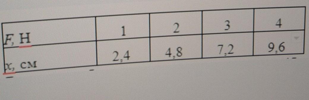 Дослiджуючи пружні властивостi тiл, учень записав у таблицю значення абсолютного видовження пружини й прикладеної до неї сили, що спричинила це видовження. й Визнач за таблицею видовження пружини, якщо до неї підвісили вантаж масою 250 г.