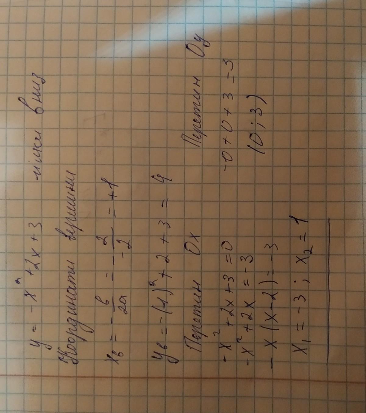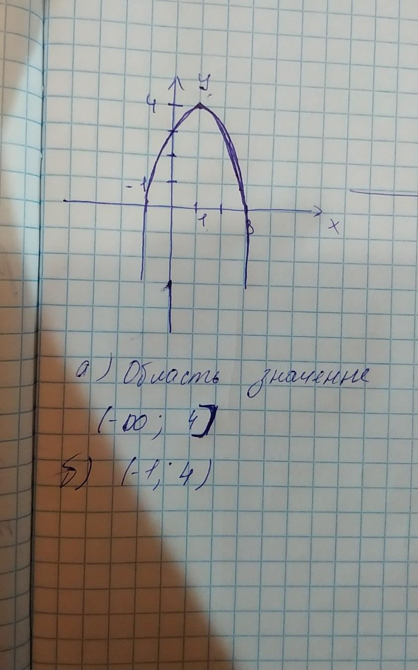 Побудуй графік функції y=-x²+2x+3.За графіком знайдіть: а) область значень функції. б) проміжок зростання функції