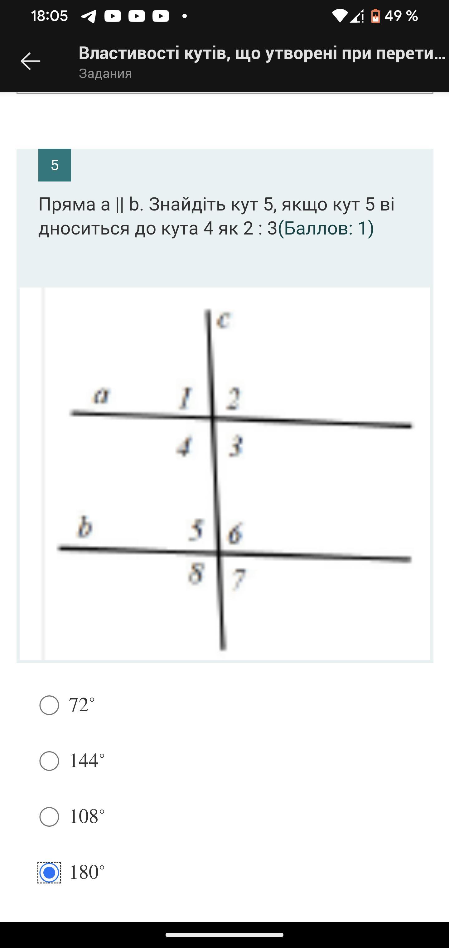 кут 4+ кут 5= 180°(як внутрішні односторонні)