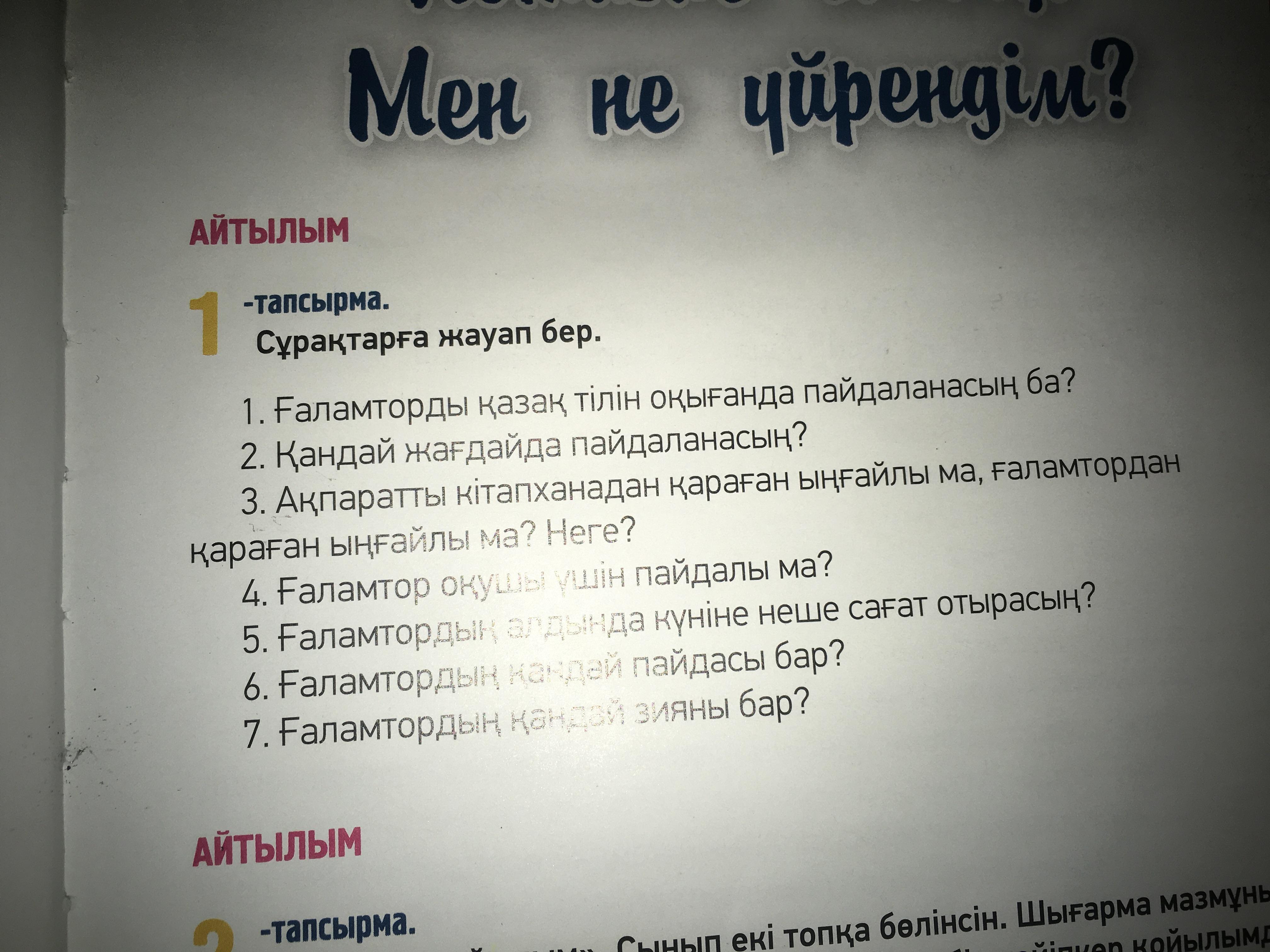 1) Ғаламторды мен казак тылын окыганда пайдаланамын
