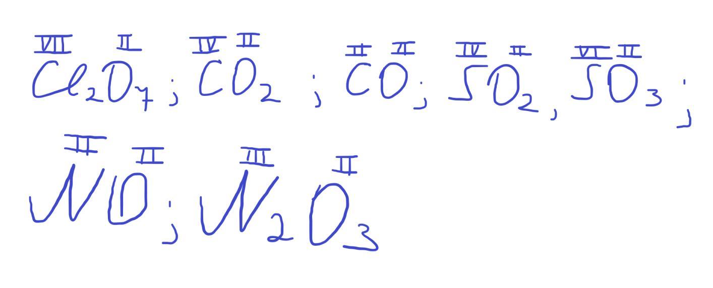 Визначити валентність елементів у речовинах: СІ2О7, СО2, СО, SO2, SO3, NO, N2O3