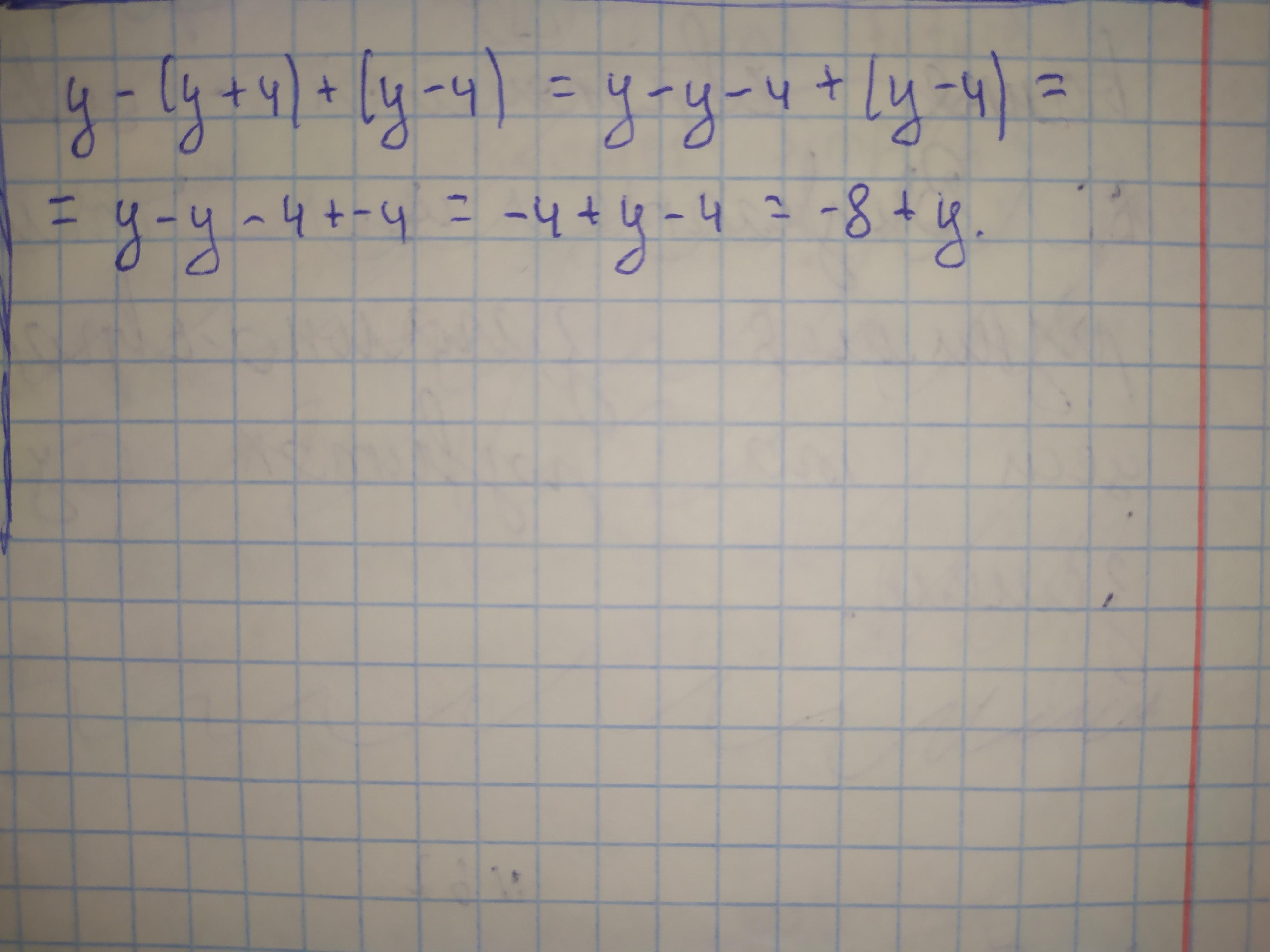 у-(у+4)+(у-4 )= у - у - 4 + у - 4 =у - 8