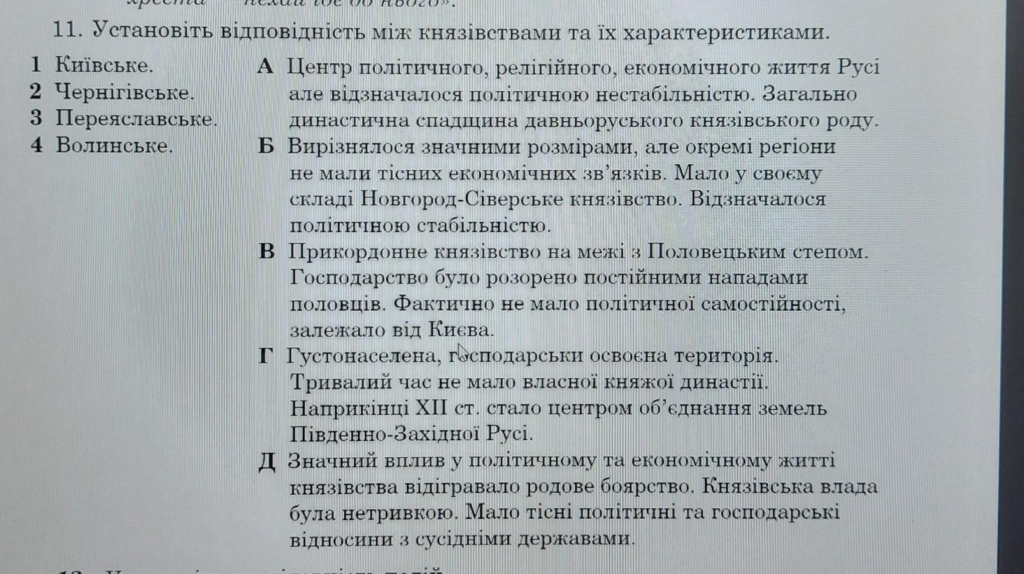 11. Установіть відповідність між князівствами та їх характеристиками.