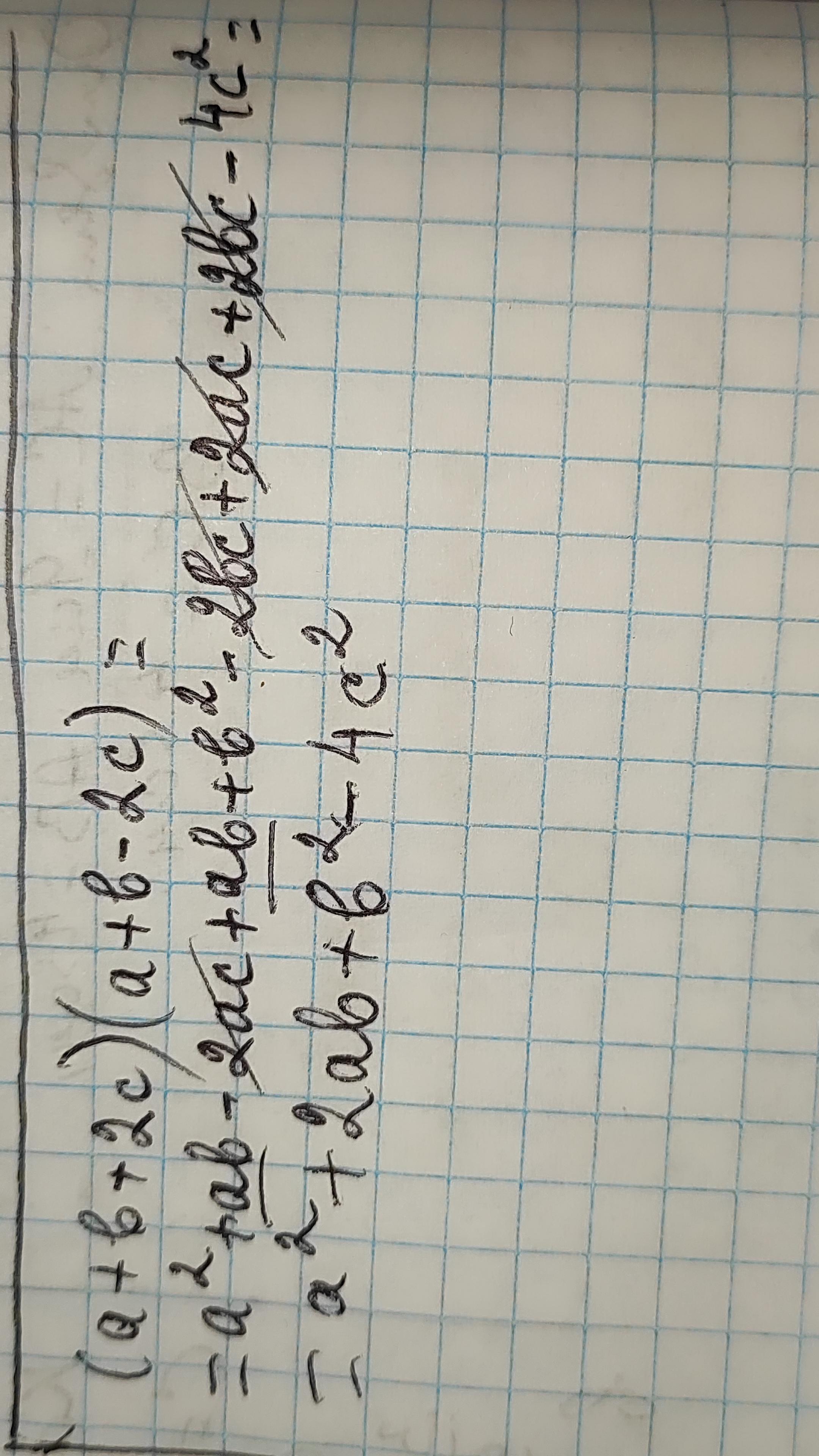 Виконайте множення використавши формули скороченого множення (а+b+2c)(a+b-2c)