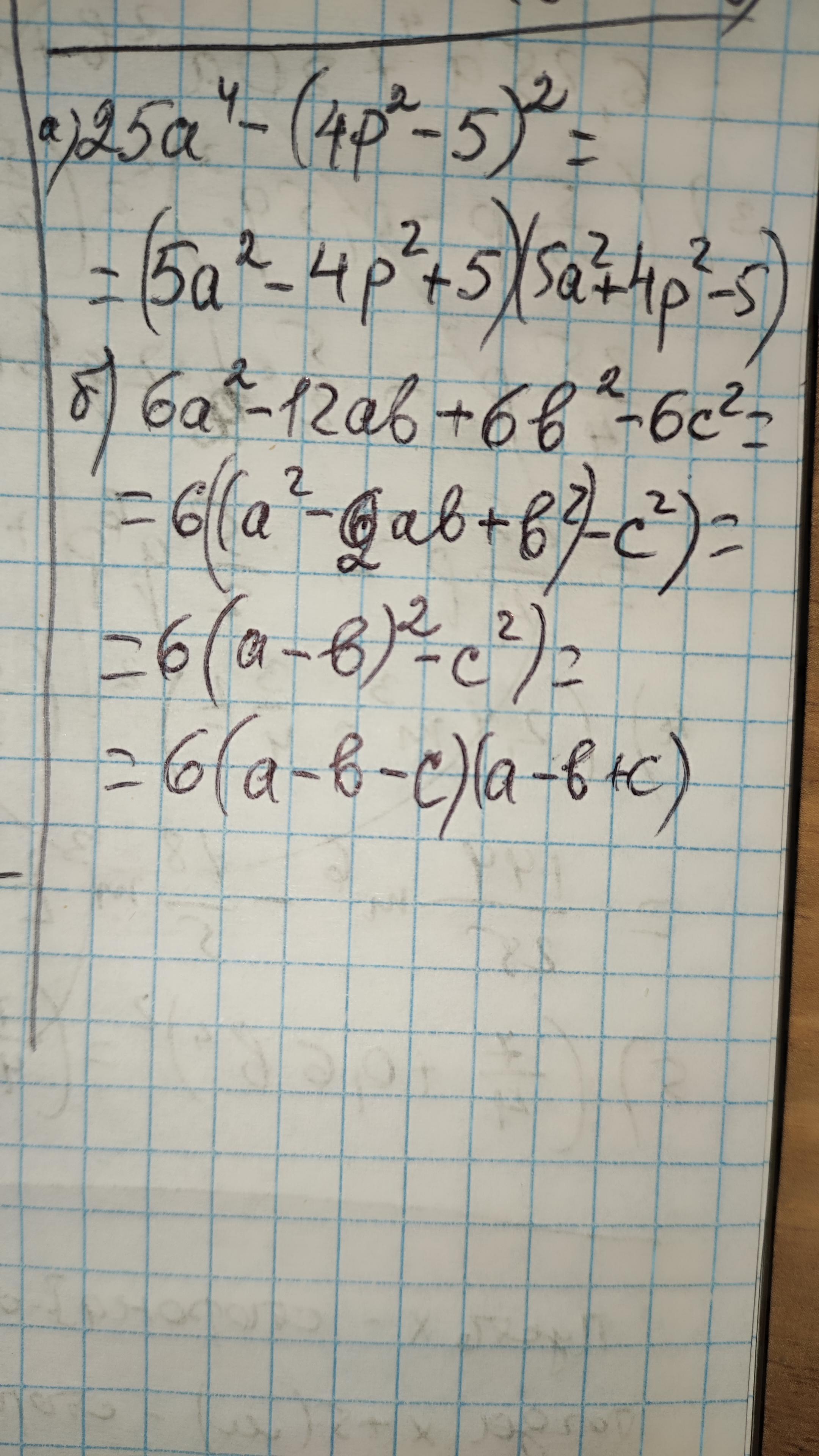 25a⁴-(4p²-5)² = 25a⁴- (16 p⁴-40p²+25) = 25a⁴- 16 p⁴+40p²-25 = (5a²+4p²-5)(5a²-4p²+5)